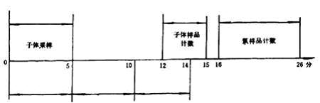 氣球法采樣系統(tǒng)示于圖4,其工作原理同雙濾膜法,只不過(guò)氣球代替了衰變筒。把氣球法測(cè)氡和馬爾柯夫法測(cè)潛能聯(lián)合起來(lái),一次操作用26min,即可得到氡及其子體α潛能濃度。其時(shí)間程序示于圖5。